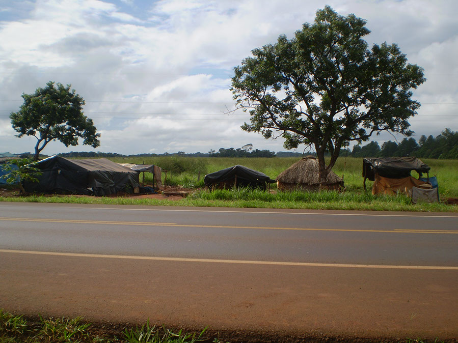 Em 2009, os indígenas sofreram um despejo e tiveram que morar à beira da BR, em frente à fazenda que abrange o território reivindicado. (Foto: Marcos Homero Lima - MPF/MS)