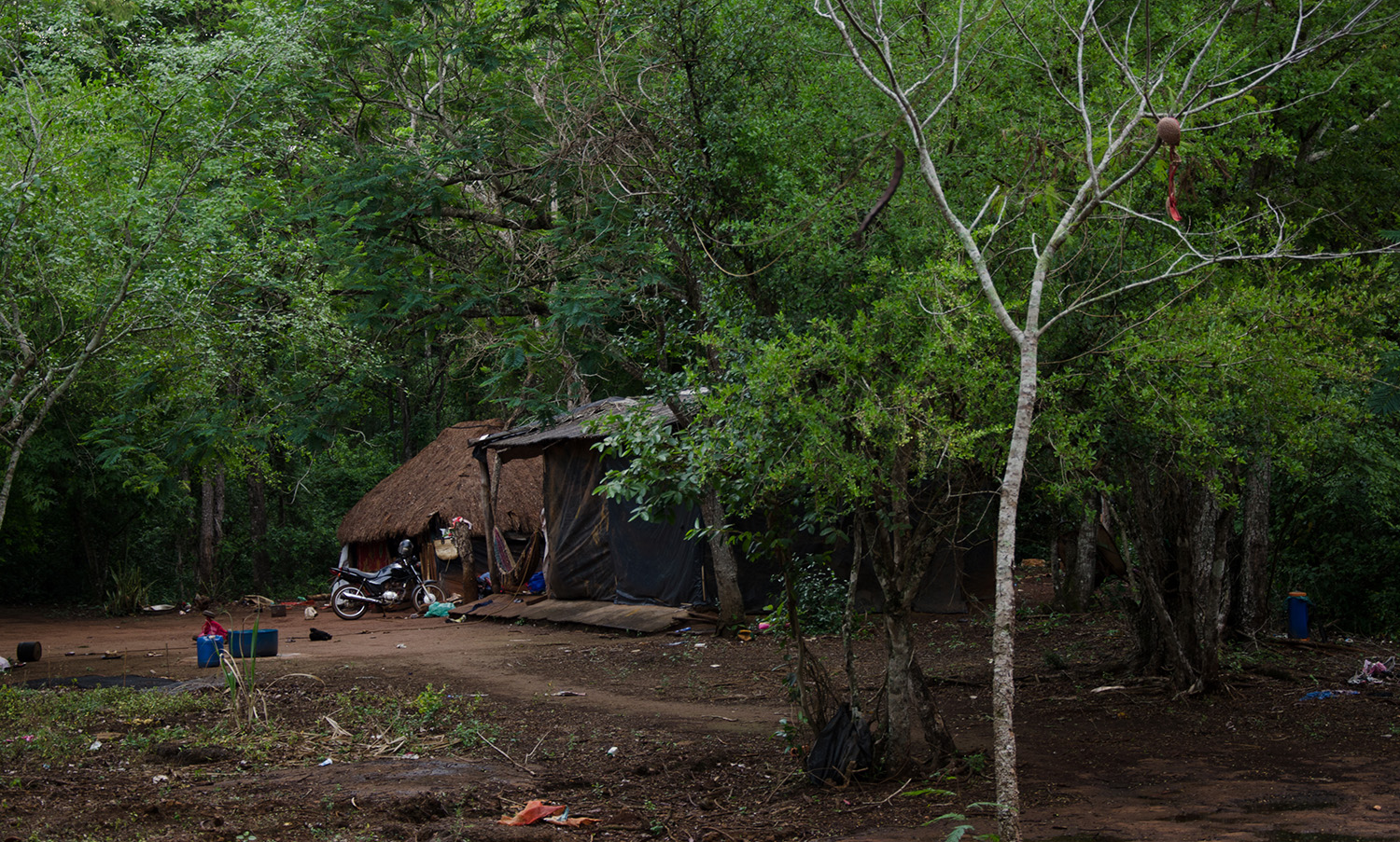 Apesar de terem o direito de permanecer na terra garantida, a luta recém começou. As 153 pessoas da comunidade possuem casas construídas de madeira e sapé escondidas dentro da mata. As moradias, espaçadas entre si, são divididas em grupos familiares, que juntos formam a grande parentela de Laranjeira Ñanderu. Muitas das casas se perdem entre as árvores e trilhas de poucos centímetros de largura direcionam o caminho até elas. O único lazer presente na aldeia é o campinho de futebol localizado em frente à casa de reza. Ali, crianças e adolescentes brincam enquanto os adultos se juntam para tomar tereré ou chimarrão.