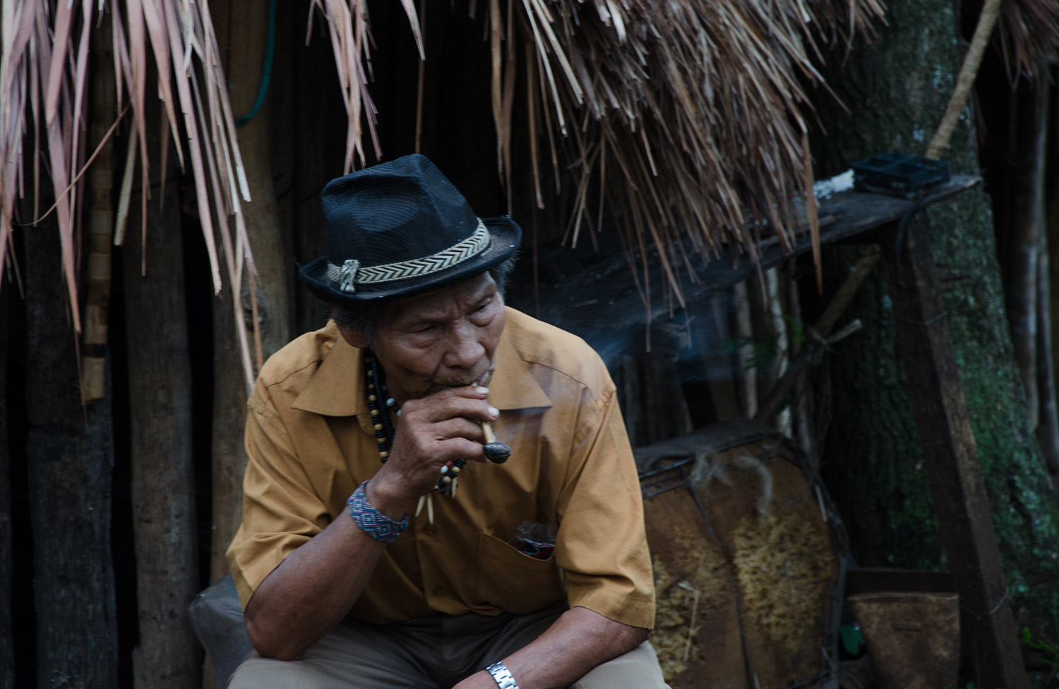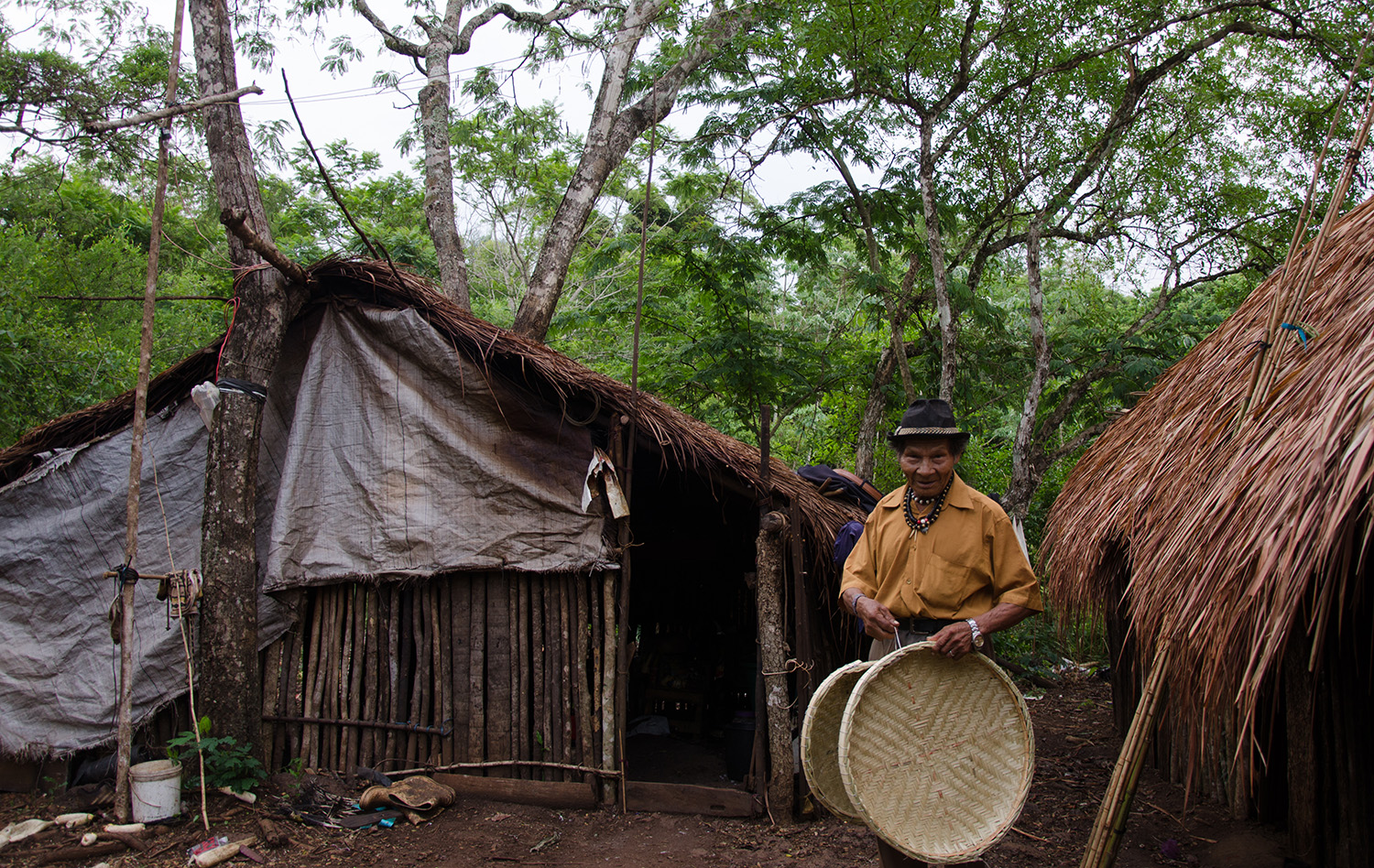 - A gente tomava água suja, quando chovia enchia a barraca, um ano assim. Pior que animais a gente morava dentro das barracas, mas era a única maneira. Morar na beira de uma Br pra mim era humilhante, sem coração, muitas vezes olha pra essas pessoas e acha que nós não somos humanos. Nosso sonho não é isso, nosso sonho se chama tekoha, onde é o nosso espaço tradicional, nossos ancestrais, onde a nossa história que tá enterrada, isso é pra mim que é morar.