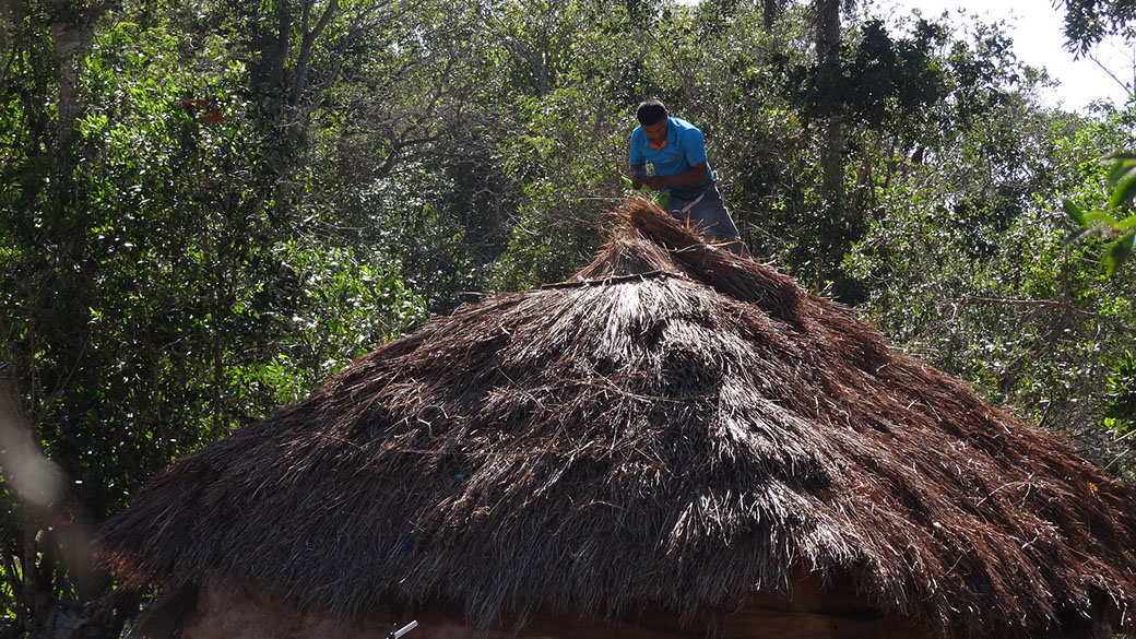 Após uma decisão da Justiça, a comunidade pôde ocupar o território até o fim do processo. Os indígenas voltaram e reconstruíram a aldeia, a foto mostra a casa de reza. (Foto: Marcos Homero Lima - MPF/MS)