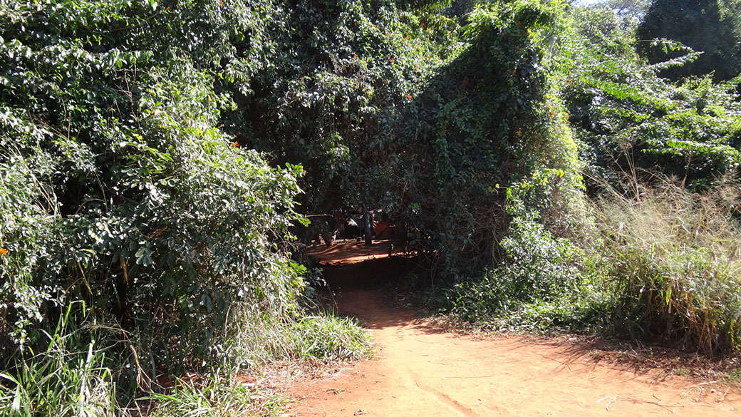 Da porteira da fazenda, menos de um quilômetro de estrada antecedem a chegada ao centro da aldeia Laranjeira Ñanderu. A trilha, que se segue em meio à plantação de milho, direciona à casa de reza, uma grande cabana de sapé construída pela comunidade para receber os rituais e rezas tradicionais dos Kaiowá. Quando chegamos na propriedade que abrange o tekoha, logo fomos recebidas pelo filho do dono da fazenda. O homem de meia idade pareceu incomodado com a nossa presença, tentou justificar que não é uma pessoa ruim e que não quer prejudicar os indígenas abrigados a poucos metros dali. Investigações do Ministério Público Federal em Mato Grosso do Sul (MPF/MS) apontam o contrário, que os proprietários impuseram empecilhos para a entrada de pessoas na fazenda, desde membros da Funai até agentes de saúde, o que impedia o atendimento médico e policial, o transporte escolar e a distribuição de remédios e alimentos.